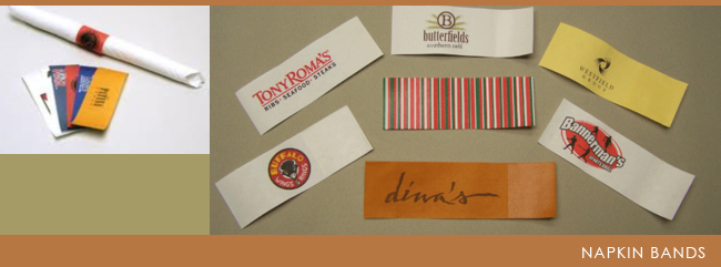 The FDA recommends tableware should be protected by being wrapped or covered.  Take advantage of the space and continue promoting your business.  We can help you design a Napkin Band that's perfect for your needs.